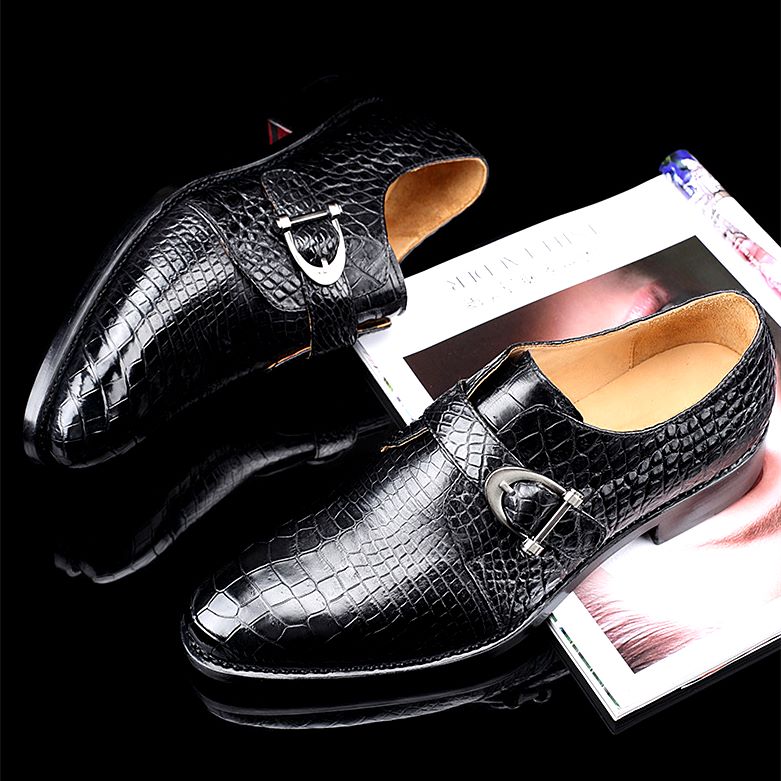 Alligator Leather Single Monk Strap Dress Shoes Oxford Formal Business Shoes