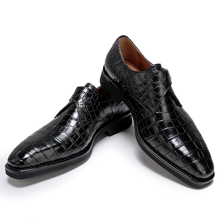 These alligator monk strap shoes are made by keeping fashion sense in mind. These are formal business shoes that are decked out by loafer style and monk strap on the edge. This modish appearance makes them suitable to wear on all occasions like formal when on a business trip, and casually when out with family.