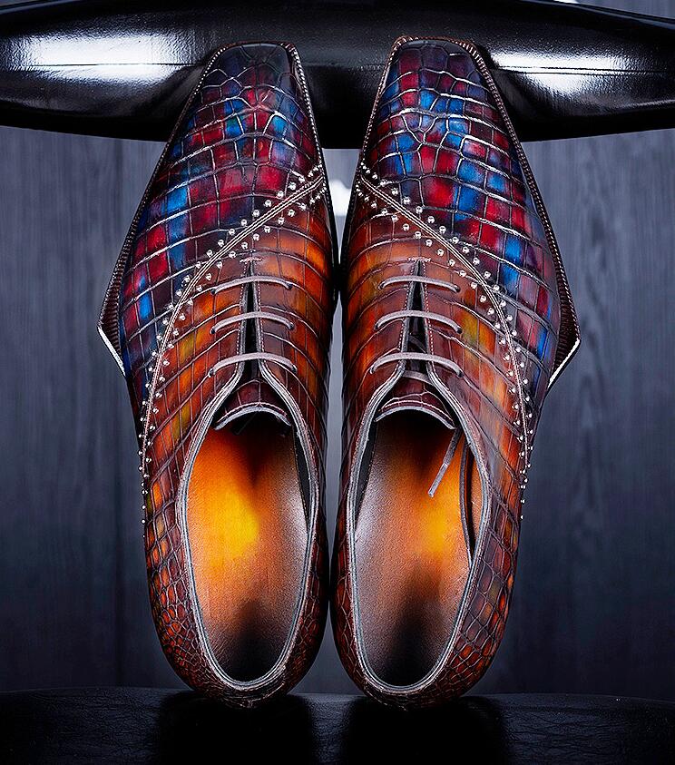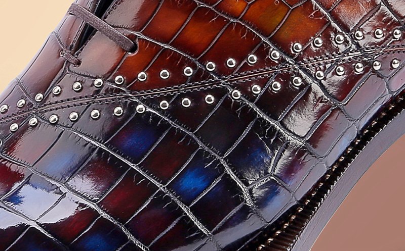 . Upper Material: The shoe upper is crafted high-quality alligator skin