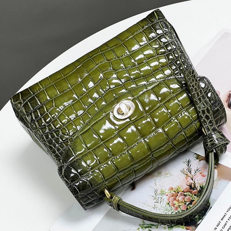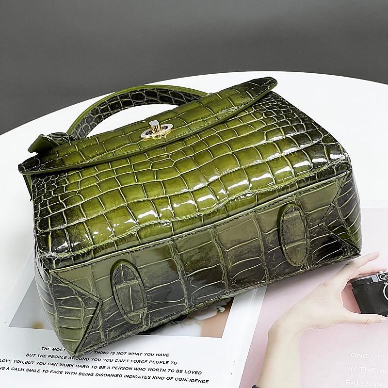 The aesthetic side of Green Alligator Leather Satchel Bags Top Handle Handbags