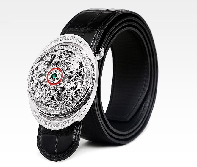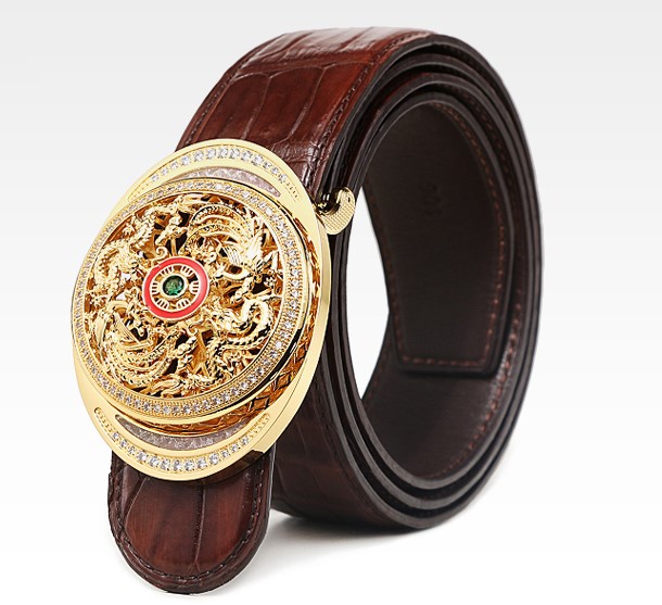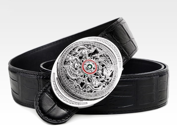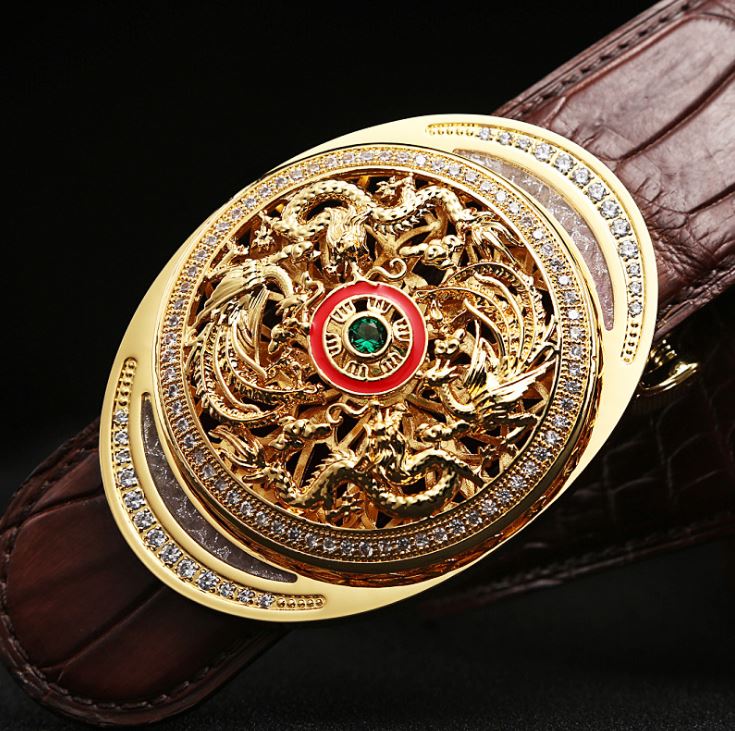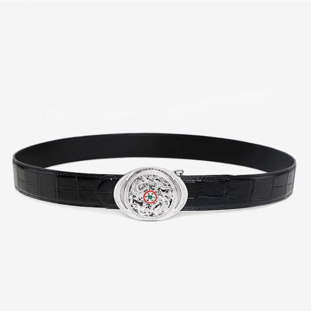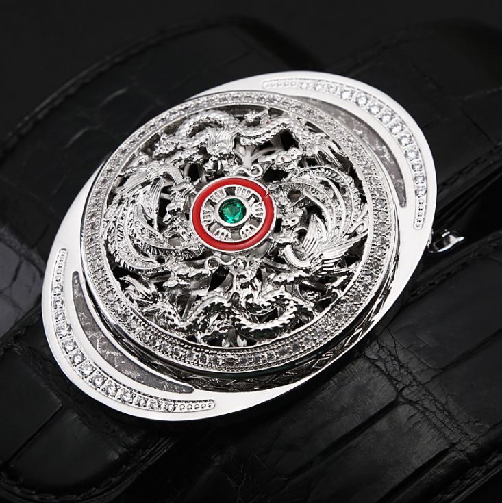 Alligator Skin Belt with Natural Zircons and Fenghuang Pattern Pin Buckle
