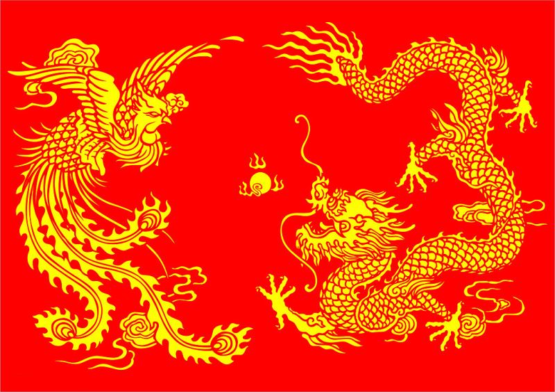 The Fenghuang has very positive connotations. It is a symbol of high virtue and grace. In ancient and modern Chinese culture, they can often be found in the decorations for weddings or royalty, along with dragons. This is because the Chinese considered the dragon and phoenix symbolic of blissful relations between husband and wife, another common Yang and Yin metaphor. In some traditions it appears in good times but hides during times of trouble, while in other traditions it appeared only to mark the beginning of a new era. In China and Japan it was a symbol of the imperial house, and it represented “fire, the sun, justice, obedience, and fidelity”.