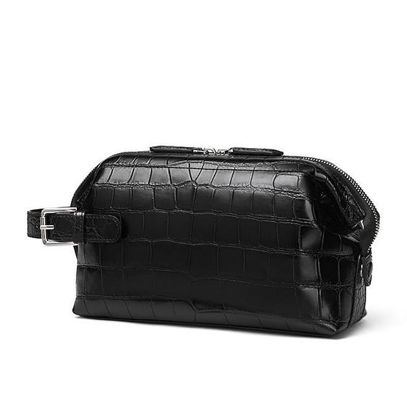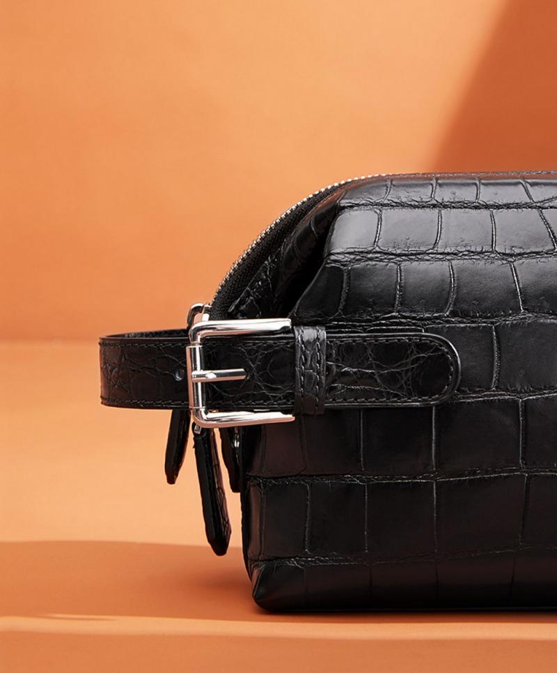 The class of this Dopp kit starts from the exterior material. It is made with alligator leather, which is a high-quality material, and it is known for its original skin patterns. Every bag you buy has unique patterns that make it premium and superior to all materials.