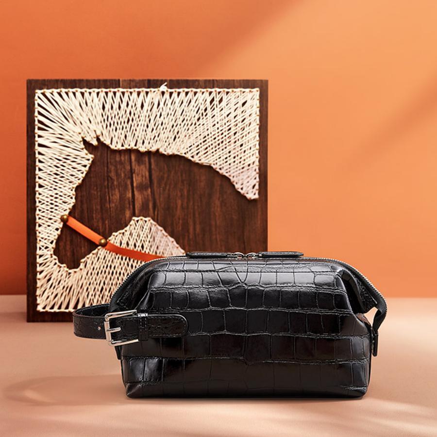 Travel with Alligator Leather Toiletry Bag Dopp Kits for Men to keep all essentials at hand. Our alligator leather Dopp kit is much more valuable than any other toiletry bag.