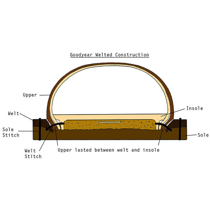 . Goodyear Welted Construction: Over 200 step process, makes the shoe highly durable, water-resistant and supportive. This is the highest grade of construction in shoemaking industry-wide.
