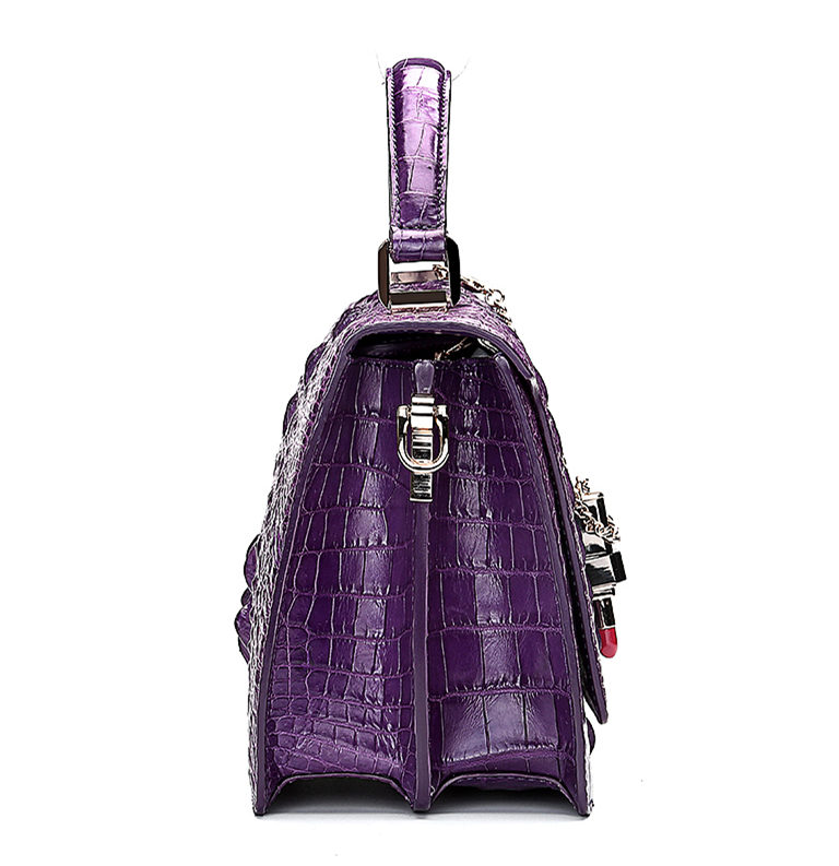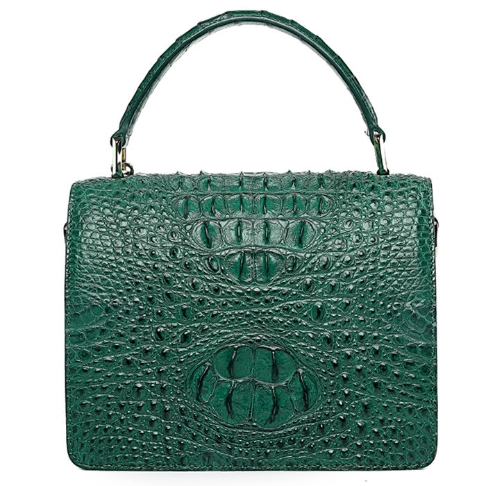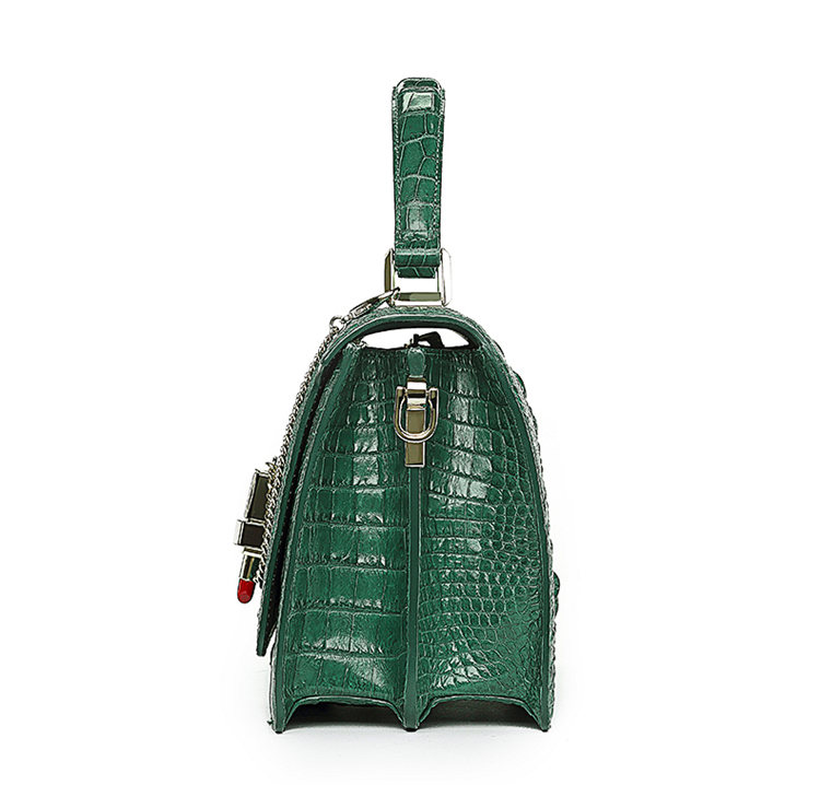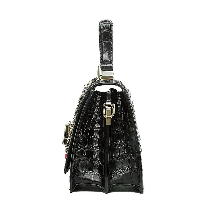 This classic crocodile handbag is cleverly designed, The front and back of the handbag reflect a different style, and you can change style whenever you like.