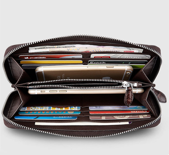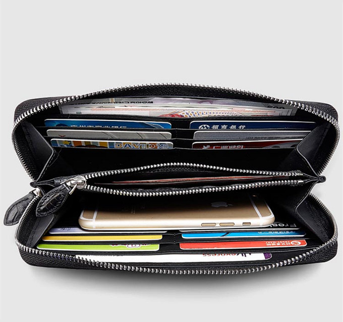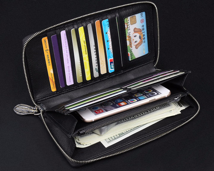 . This wallet was designed for those who like to carry all their cards, cash, cheques and more in one convenient place. With 12 card slots, inside 2 bill compartments, 2 additional pockets, 1 zippered pocket, etc.