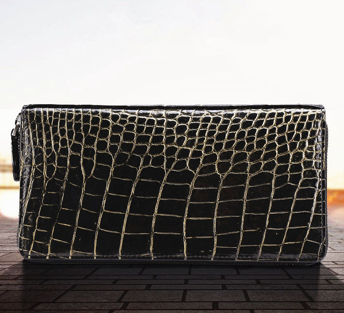 Classic Genuine Alligator Wallet, Long Alligator Wallet for Men