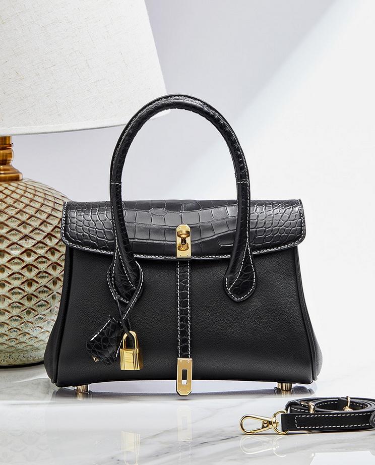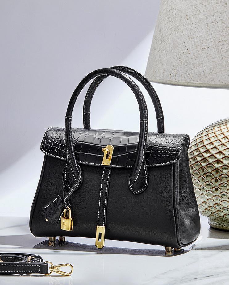 Crocodile Leather Padlock Shoulder Handbag Tote Top Handle Handbag