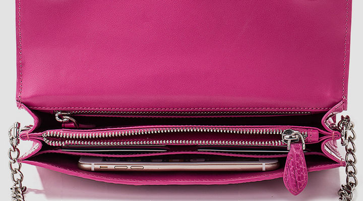 This crocodile leather purse has several compartments, Inside there’s another zip pocket and 2 card slots, with plenty of space for your phone, wallet, cosmetics, and all your basic. You can hold this crocodile leather purse in your hand or you can also use it as a shoulder bag with the shoulder strap coming with the purse.