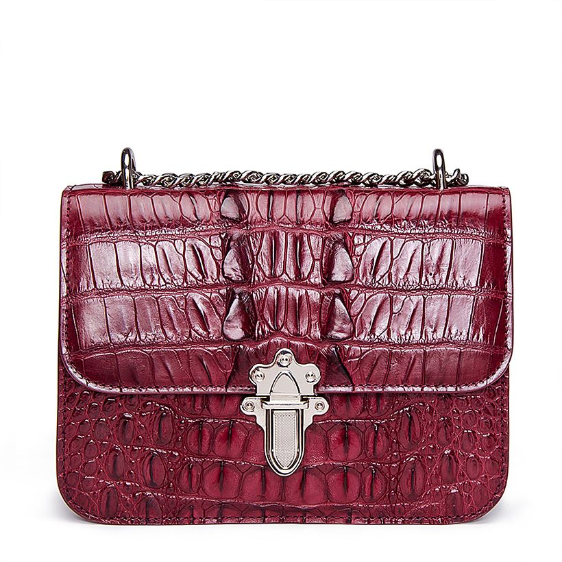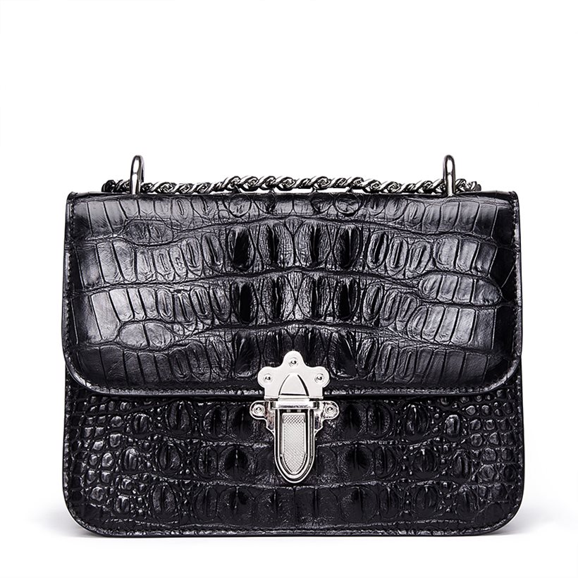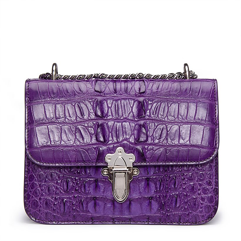 Crocodile Leather Strap Flap Purse Shoulder Bag With Chain Strap