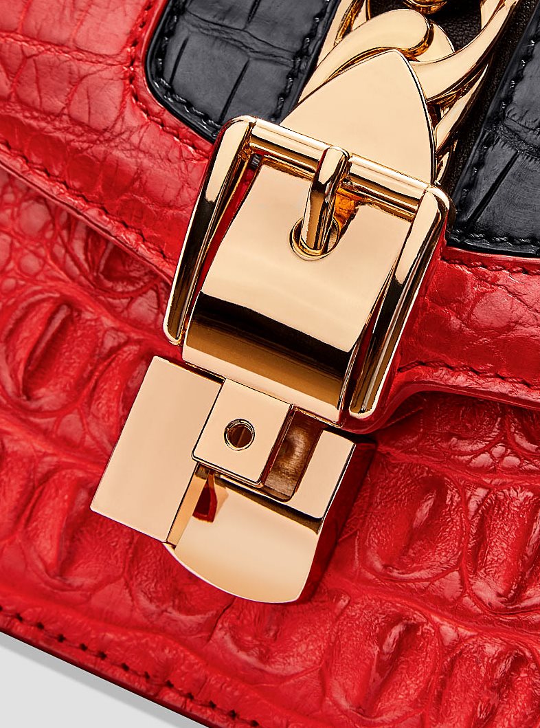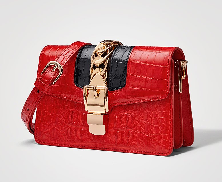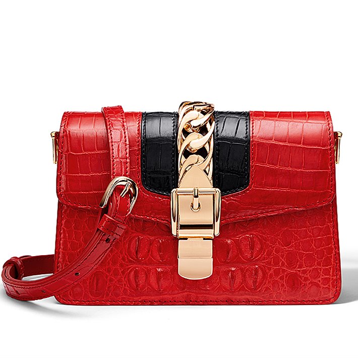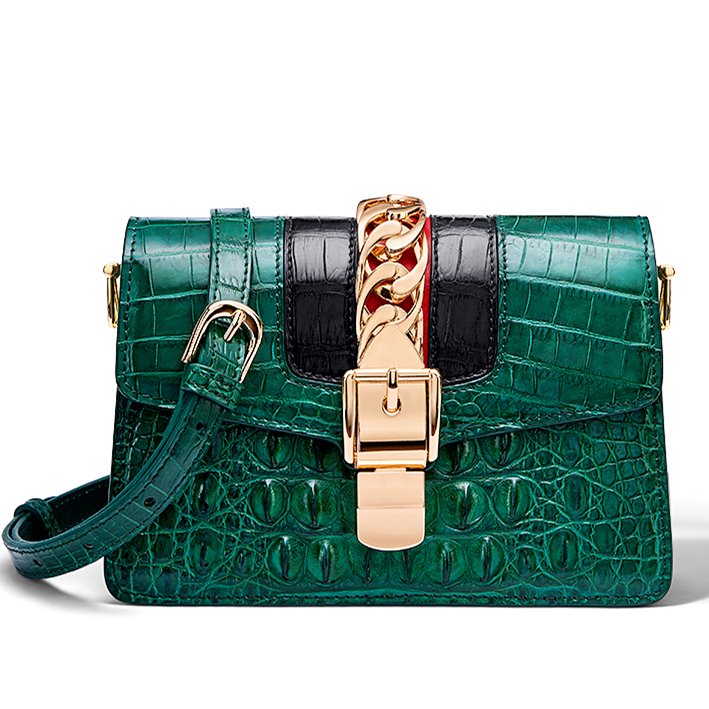 This is a trendy purse, an ever-ready accessory for work or play, spacious and economically priced. The gold chain and buckle lend the crocodile purse an extra sophisticated look. This stylish crocodile purse has lots of storage, enough room for your cell phone, wallet, makeup and whatever needs to be handy with ample space left over.