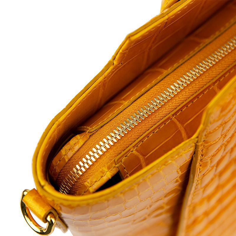 This Elegant Alligator Handbag is manufactured with the best quality alligator skin. It is very stylish and sturdy. The bag is square in shape that is stiff so that the shape of the bag will not get damaged whether you have filled it with a lot of items or you have nothing in it. The best thing about the product is that it has enough space inside that you can keep a lot of items, still you will feel like there is nothing in the bag. You will love taking your bag to anywhere that you go.
