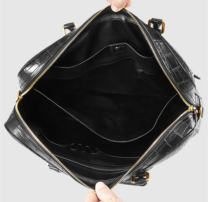 This fashion alligator bag has a removable shoulder strap, and the shoulder strap is adjustable, you can carry the bag as a cross body bag or as a shoulder bag. There is a handle, when you do not want to carry the bag, you can use the bag as a handbag or as a briefcase.