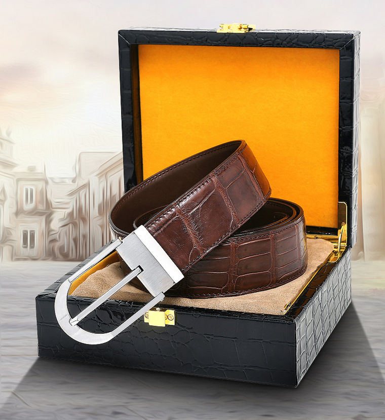 Fashion Alligator Belt, Reversible Alligator Leather Belt for Men