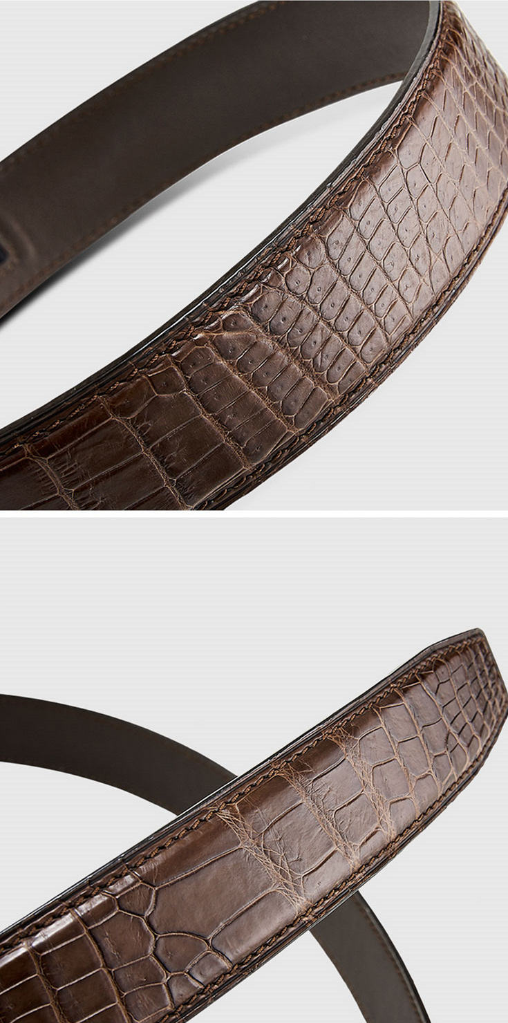 . Every alligator belt is unique because it is made from the original alligator leather, not from the embossing pattern cow leather.