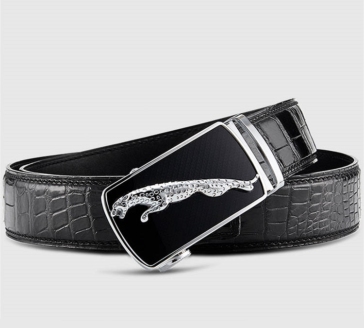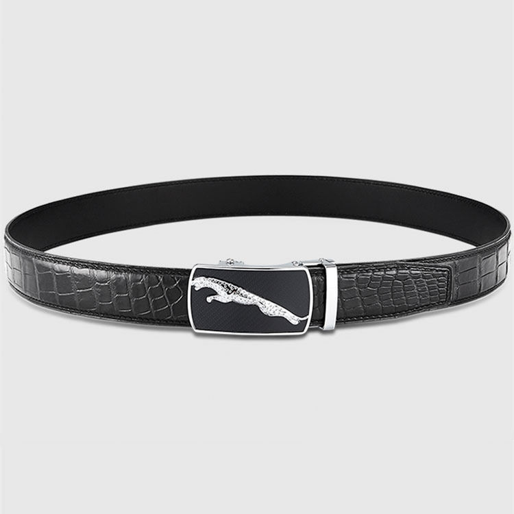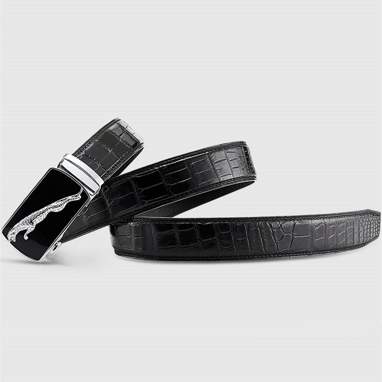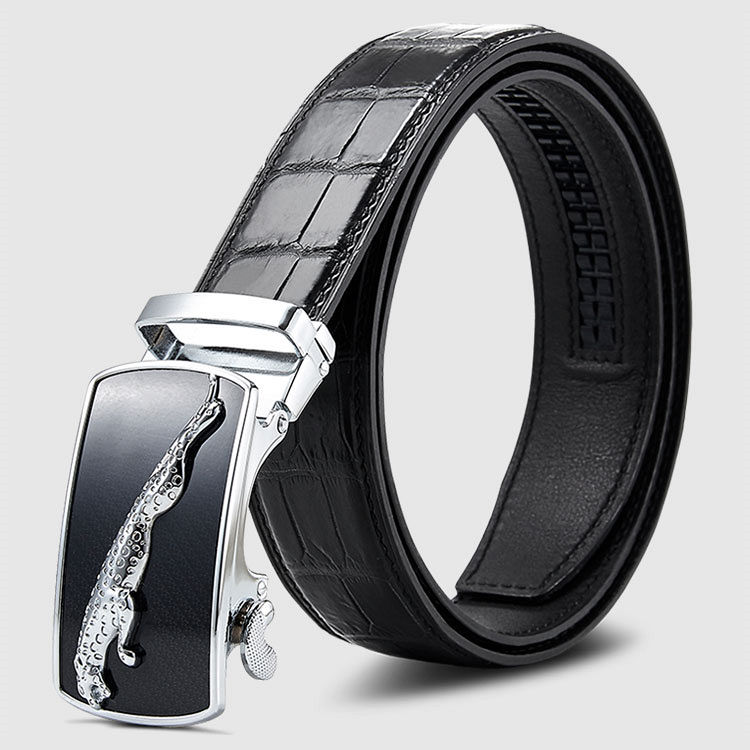 Genuine Alligator Leather Dress Belt, Automatic Sliding Buckle Ratchet Adjustable Track Belt