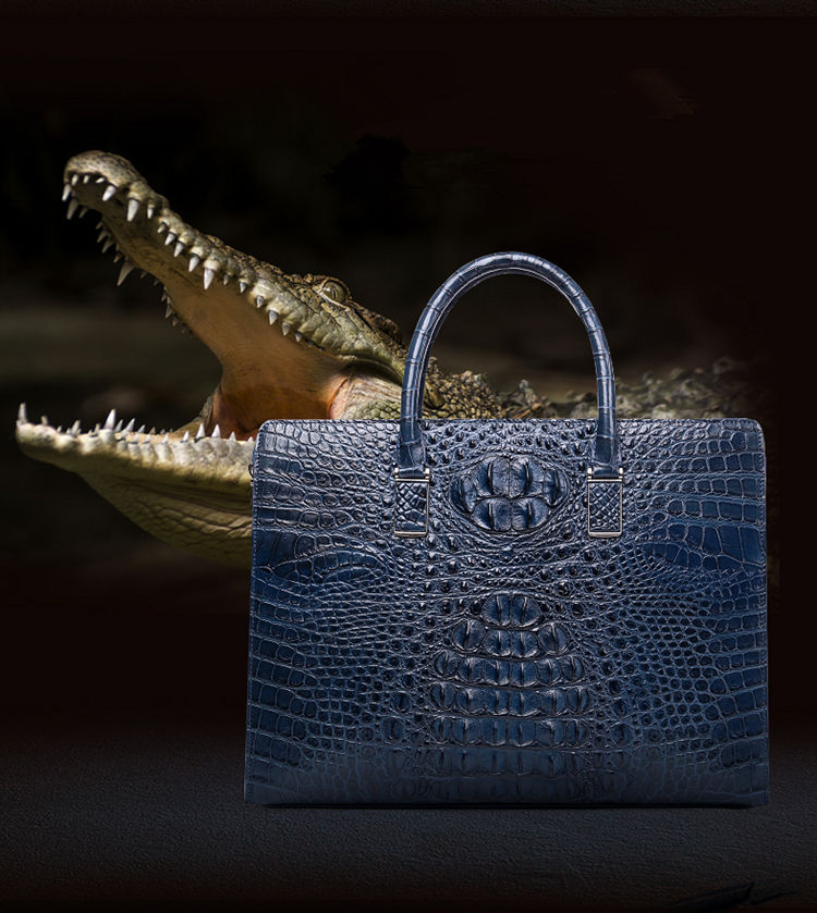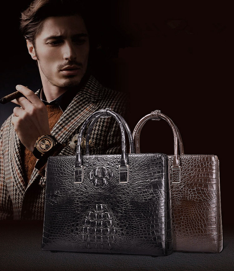 Genuine Crocodile Briefcase, Crocodile Business Bag for Men