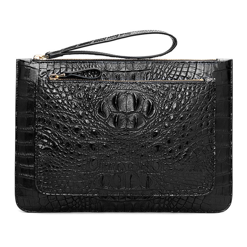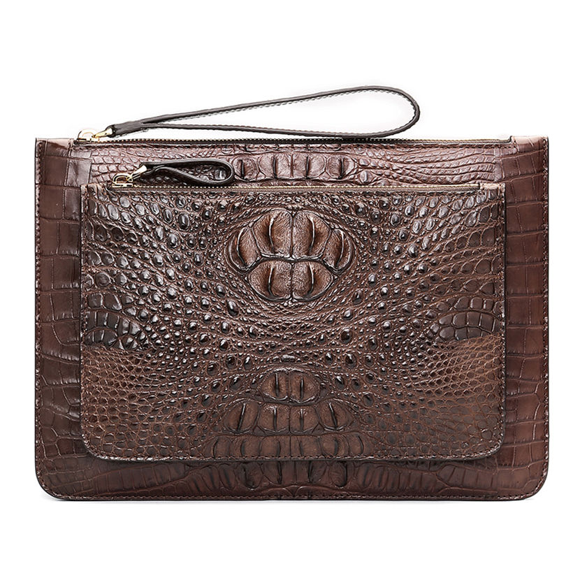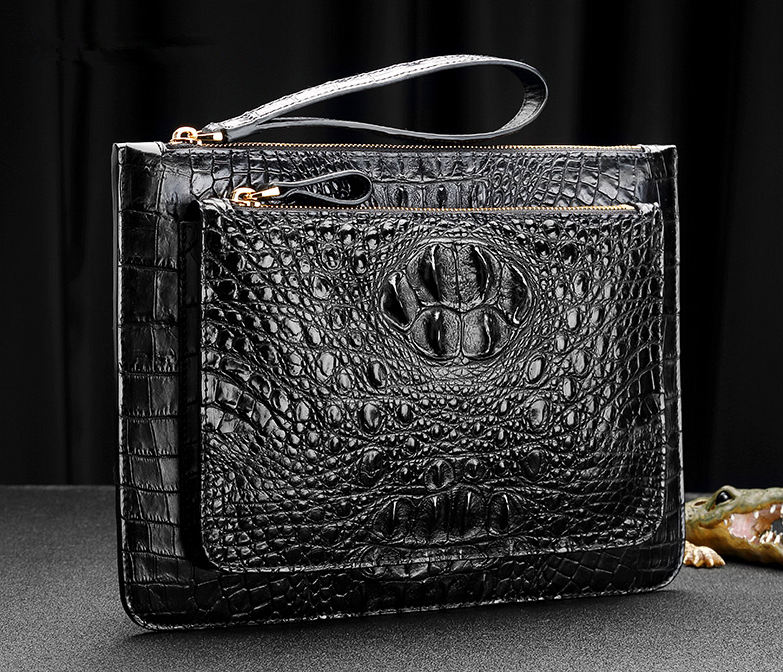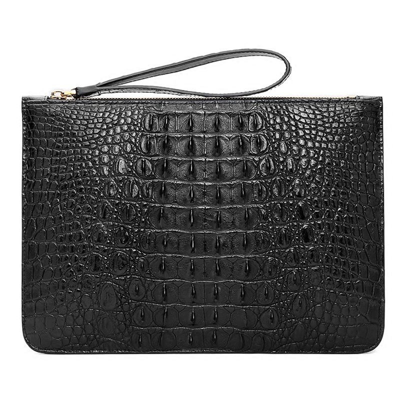 A large stylish clutch bag that big enough to hold everything you want. The size is bigger than A4 magazine, which means you can even put paper documents in this bag, let alone cellphone, wallet, keys, small cosmetics necessities, tissue, Ipad. Made of High-quality crocodile leather, available in 2 elegant colors, Black, Brown, it is a nice business bag, as well as a men’s everyday clutch bag.