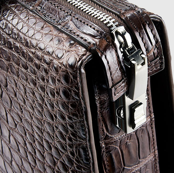 The alligator bag today is no longer seen just as a luxury item, to dress up an elegant outfit or to show off and accentuate your look: it has become an indispensable accessory for every man, kept close at hand and relied on every moment of the day. A comfortable bag is an intrinsic part of a man and his daily life.