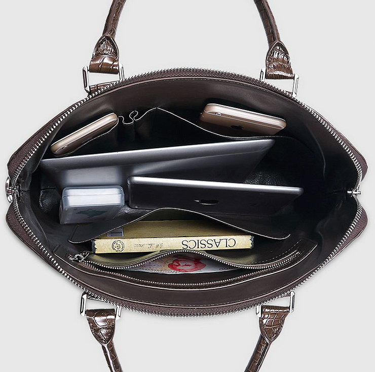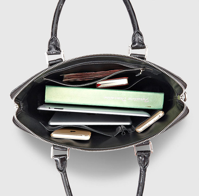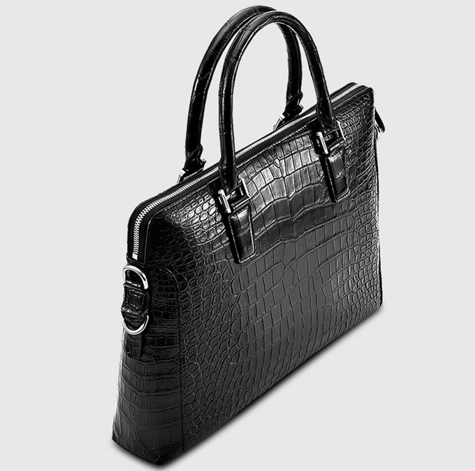 This genuine alligator bag has a removable shoulder strap, and the shoulder strap is adjustable, you can carry the bag as a cross body bag or as a shoulder bag. There is a handle, when you do not want to carry the bag, you can use the bag as a handbag or as a briefcase. This bag is multi-usage, you can use the bag in many occasion.