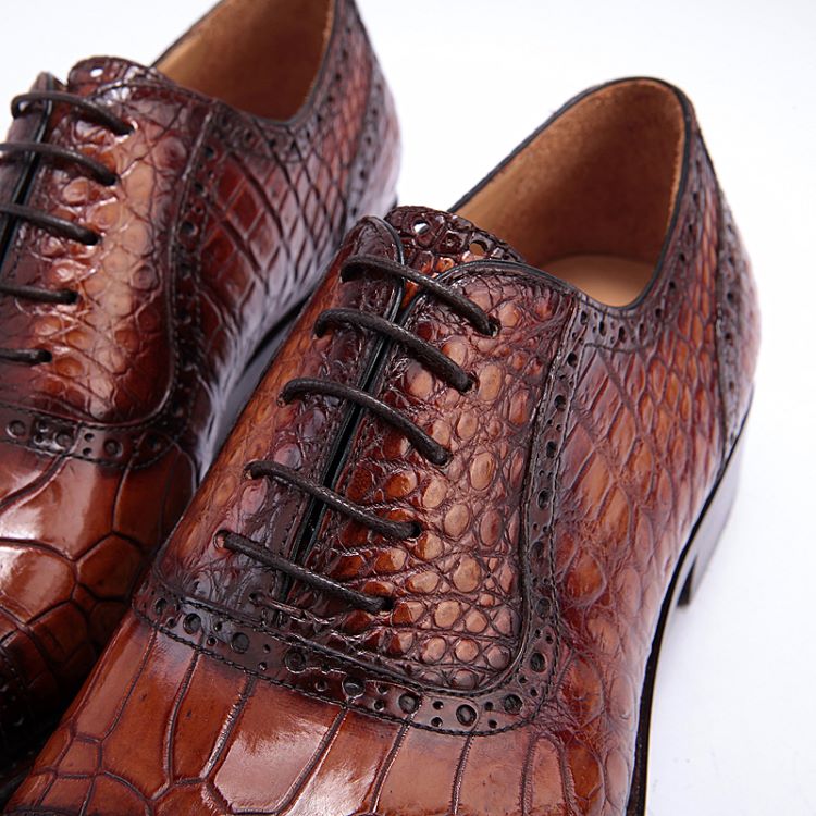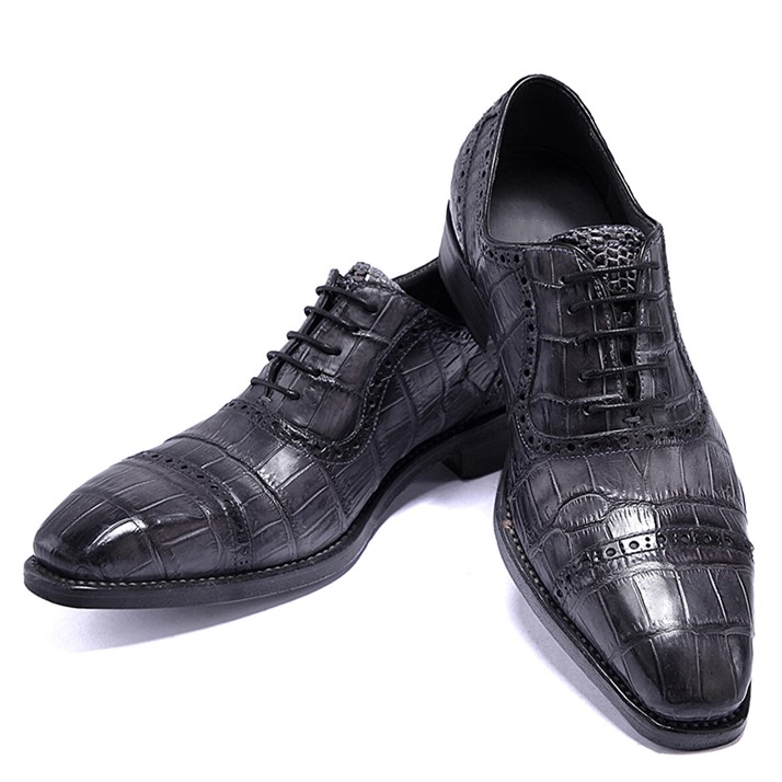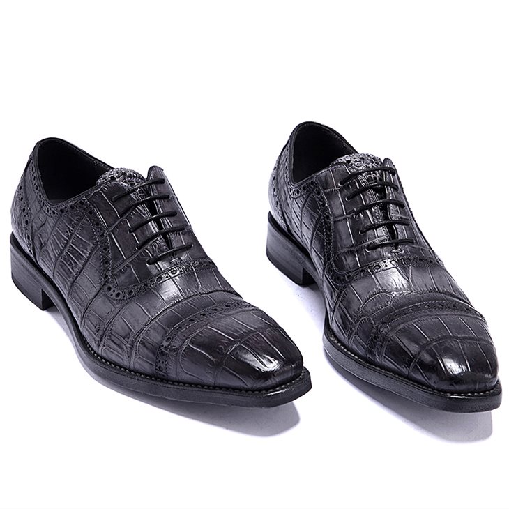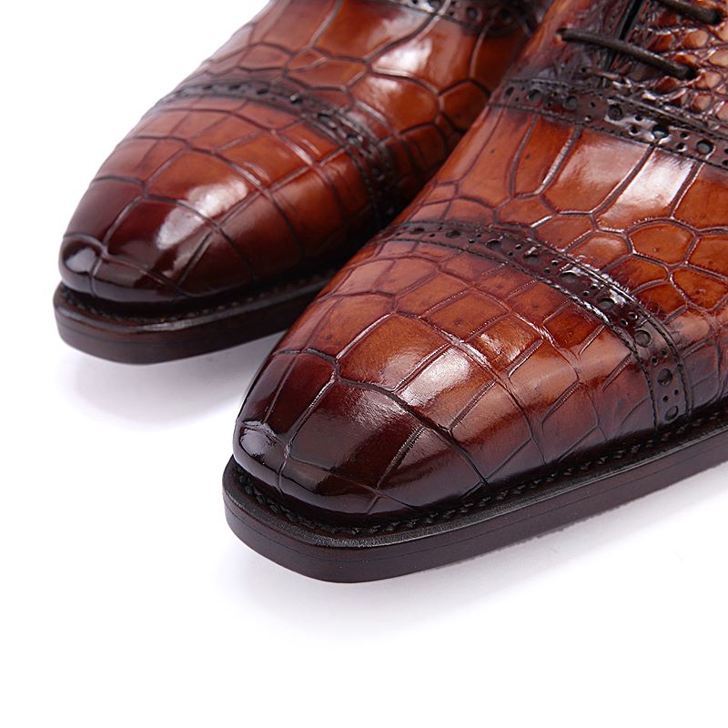 Mens Alligator Leather Cap Toe Lace-up Oxford Classic Modern Business Dress Shoes