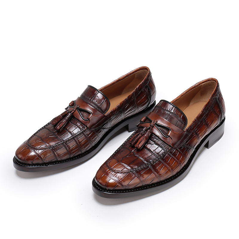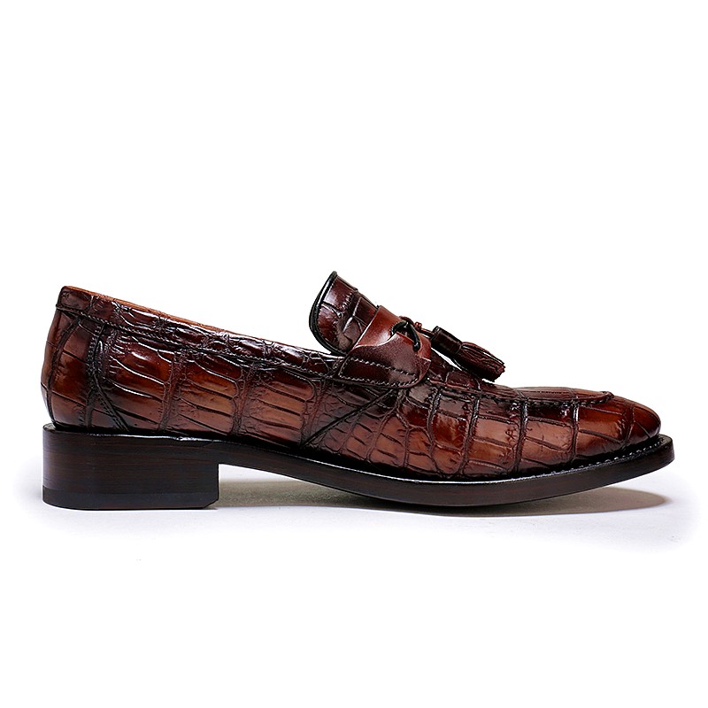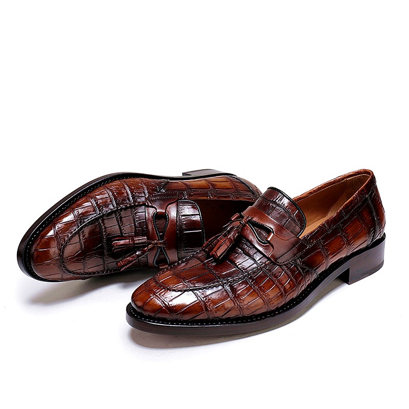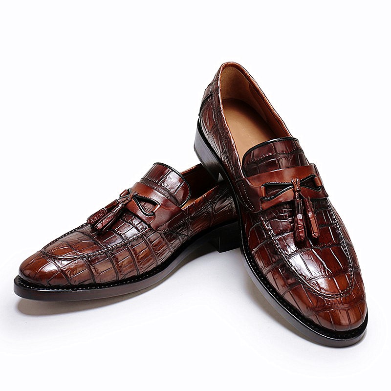 Handcrafted Mens Alligator Tassel Loafer Slip-On Shoes