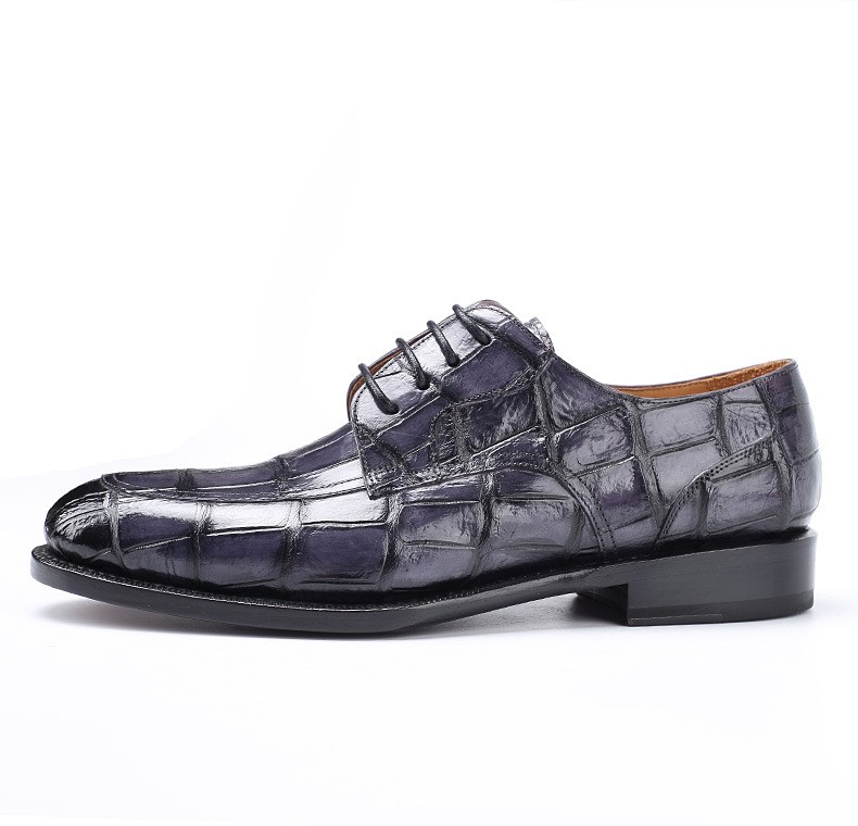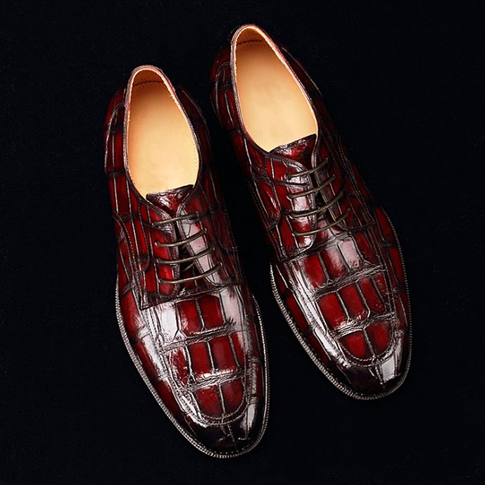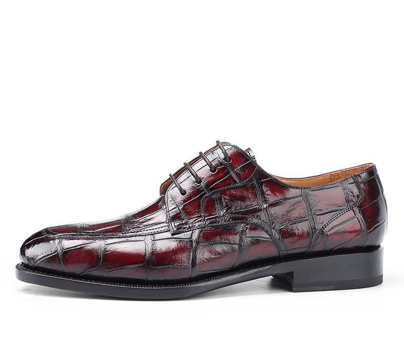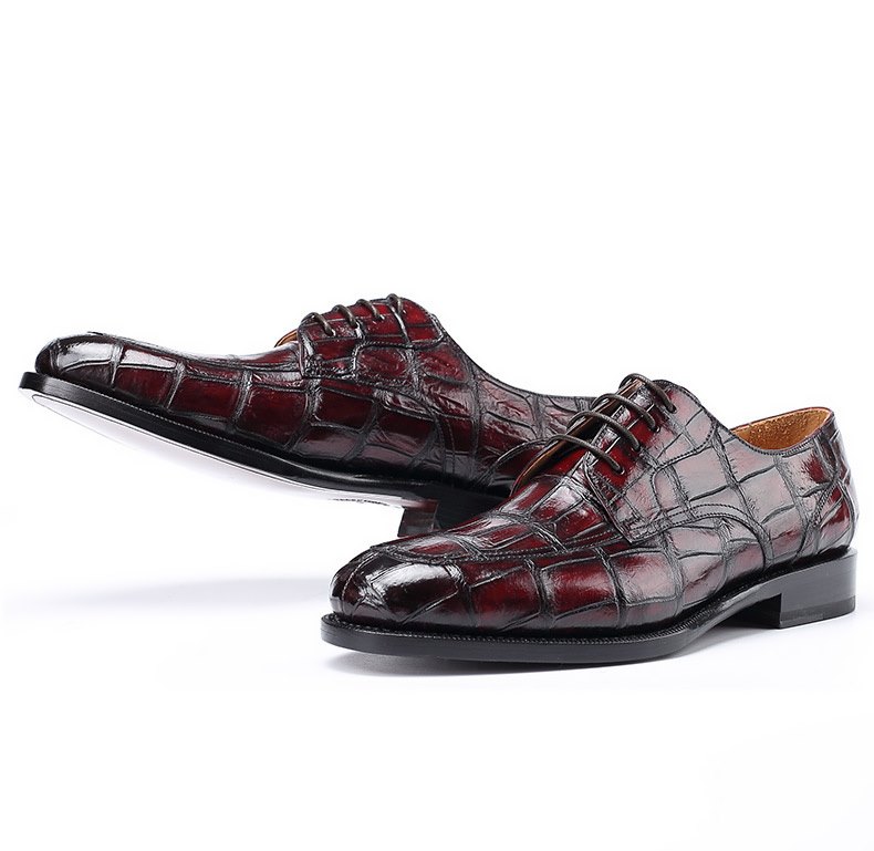 Men’s Burnished Genuine Alligator Leather Shoes Classic Formal Leader Dress Shoes