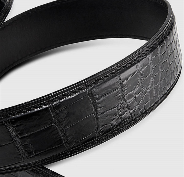 . Every alligator belt is unique, because it is made from the original alligator leather, not from the embossing pattern cow leather.