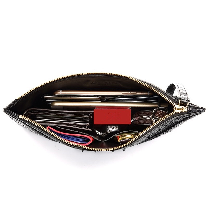 Fortunately, there is a stylish solution to the problem of what to tote when you don’t want to leave behind your phone but want to skip the bulk of a big bag. This Crocodile Clutch Wristlet Handbag is the answer.