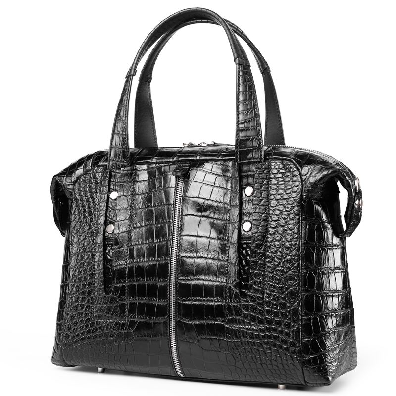 Exhibit a stylish look by carrying this alligator briefcase handbag to any casual outing with friends or family. It comes with a zip closure that ensures the safety of your belongings. It features a long zip at the front, which lends it a trendy look. Besides, the use of genuine alligator leather in its making ensures that it lasts for a long time.
